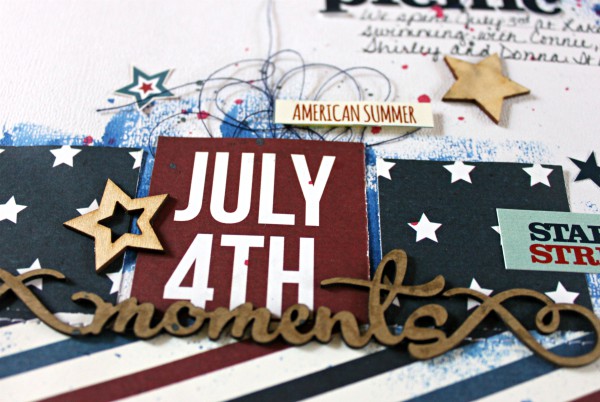 I used a photo of Austin last 4th of July when we met some of my family at Lake Wazee to have a picnic and swim. I used Simple Stories Sea To Shining Sea along with some Creative Embellishments chipboard and wood veneer for this layout: